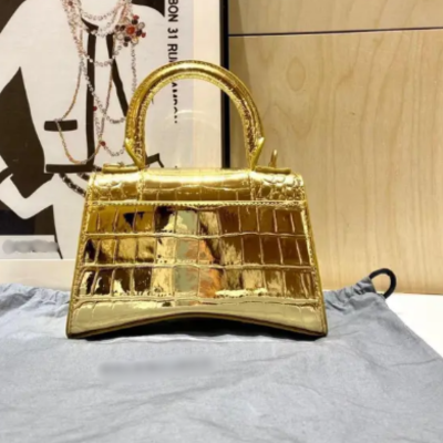 B Gold or Black Croc-Embossed Top Handle Bag | Metallic Mini Handbag